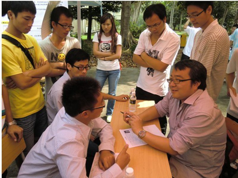 2011年10月25日上午10点,英国上市公司3652011年秋季专场招聘会在儋州校区四号教学楼前广场隆重举行。此次招聘会是在就业指导中心的大力支持下,邀请了来自浙江省宁波市宁海县汽车零部件协会的15家企业单位。莅临本次招聘会的领导有学院院长翁绍捷教授、学生处邓秀成副处长、学院党委黄国标副书记,参加招聘会的还有学工办老师及各专业的优秀毕业生。