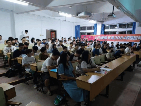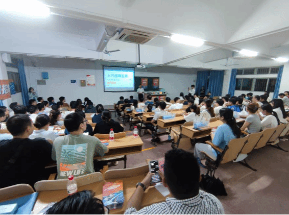 925日晚,上汽通用五菱汽车股份有限公司(以下简称上汽通用五菱2024校园招聘宣讲会在二教2-110顺利举行。上汽通用五菱海南线校园招聘经理陈志根、招聘运营师张洋、新产品质量经理罗晓宁以及有就业意愿的同学参与本次活动。