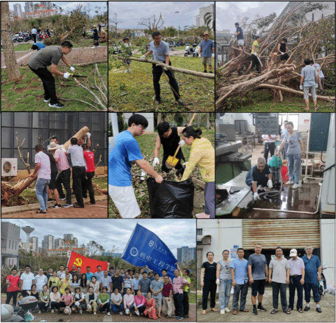 2024年9月9日下午,为了加快推进超强台风“摩羯”灾后自救重建,在学院党委书记张喜瑞教授、院长唐荣年教授的带领下,全院集中清理研发楼、工程中心等区域内的倒伏树木、残枝落叶和玻璃碎石等。学院领导班子成员、“三办”工作人员和未有教研任务的教职工、部分热心学生等近80人参加。大家分工明确、不畏酷暑、齐心协力、众志成城,经过近3个小时的清理劳动,将周边区域上的倒伏树木、残枝落叶和玻璃碎石等进行了有效清除,并排放整齐以便后续处理,保证了主干道的顺利通行,加快了校园的灾后恢复生产。